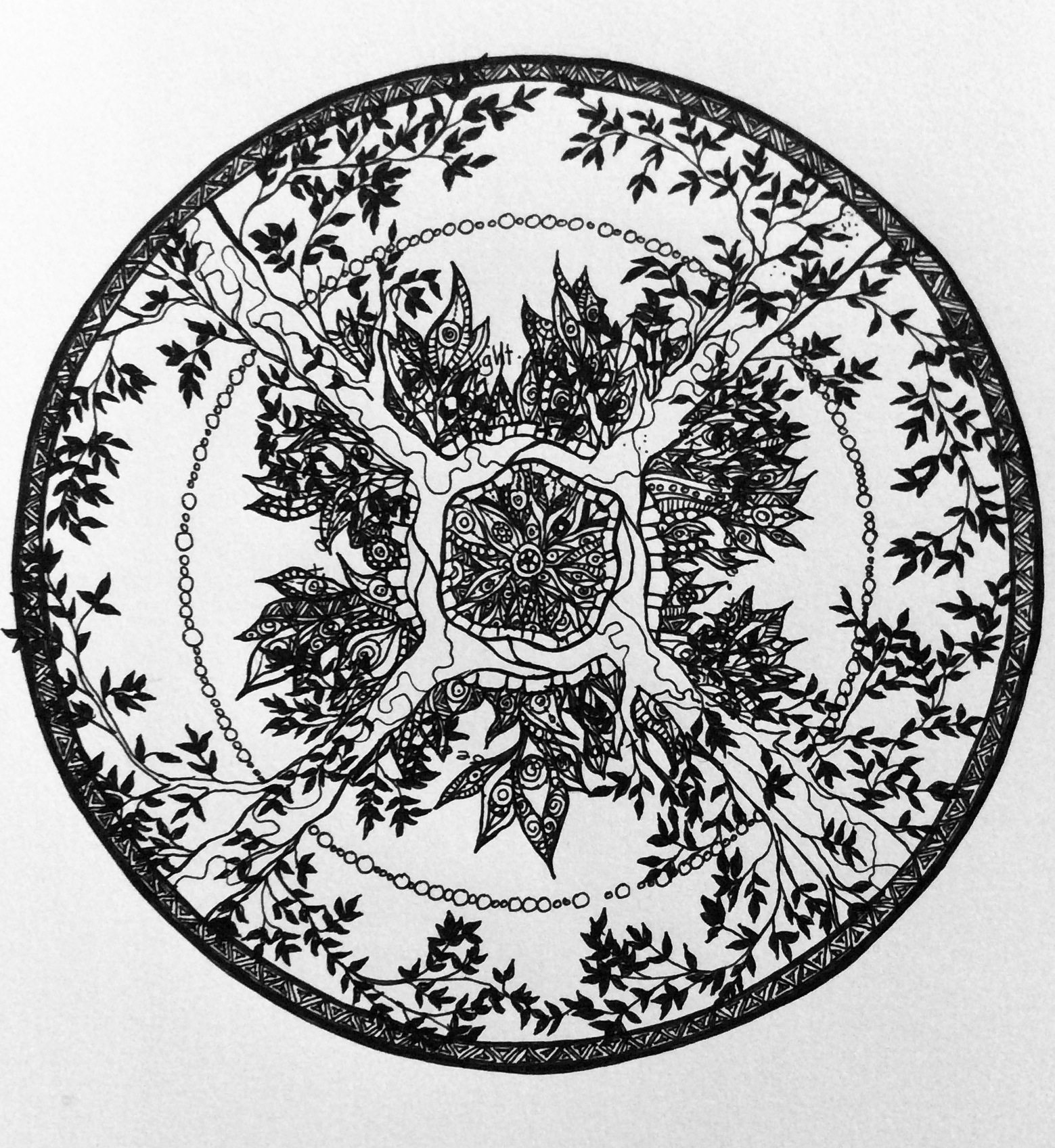 I have been drawing in circles lately…. One holding a smaller creation, holding a smaller creation. Or looking from in out it would seem that the image is expanding from an idea at the heart.