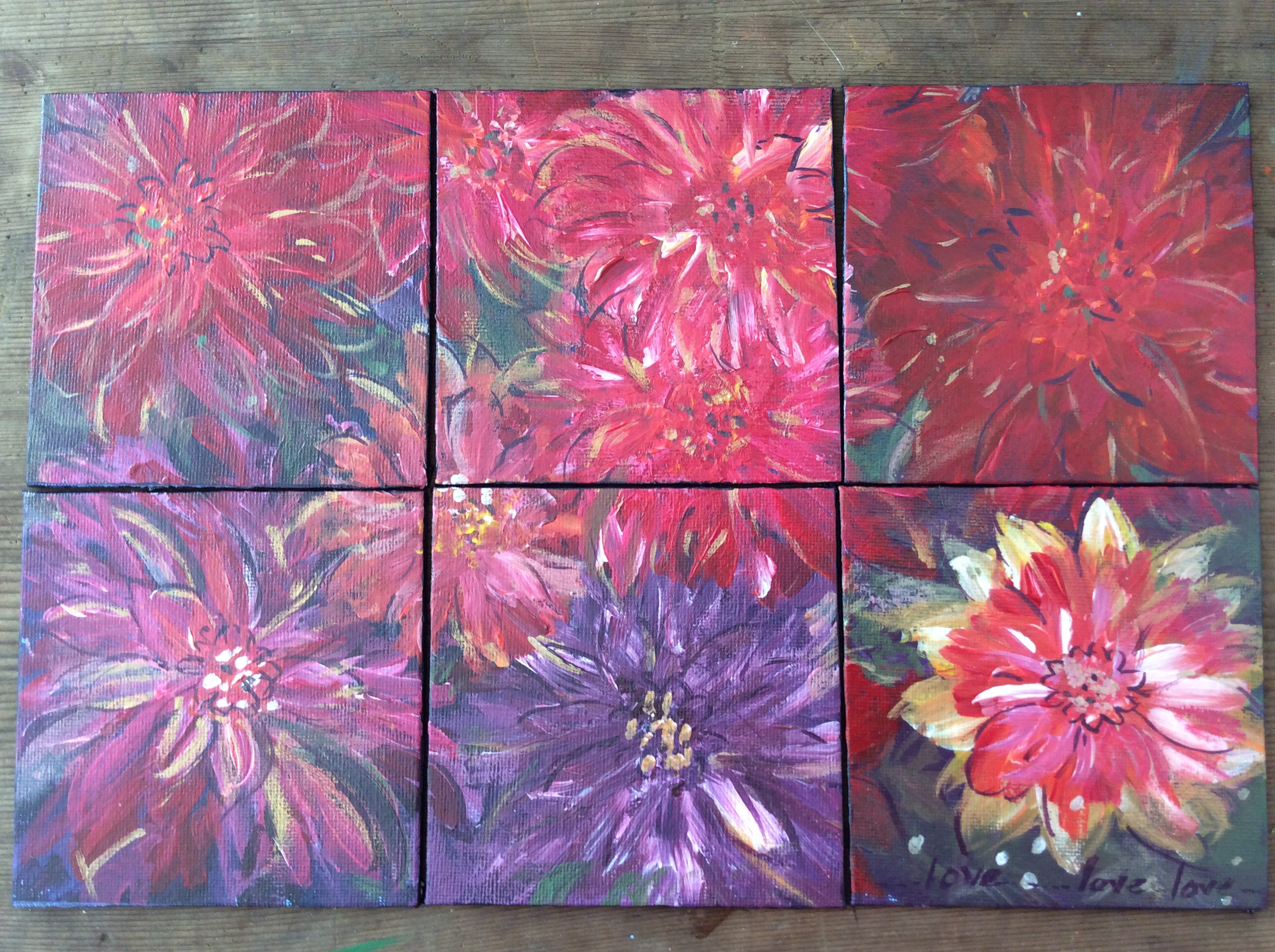 Precious…. A link to memory that was cherished and lightened her heart. So my friend and I bought some and I put them on my painting table for the day and…. They we’re the germ for the flowers I painted and the colours that arrived on tiny boards of canvas. They made me happy too.