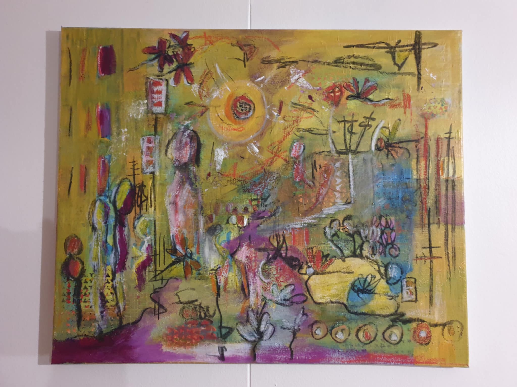 Anderson, Sandra 2025. Making Connections, mixed media on Acrylic 400mm X500mm
